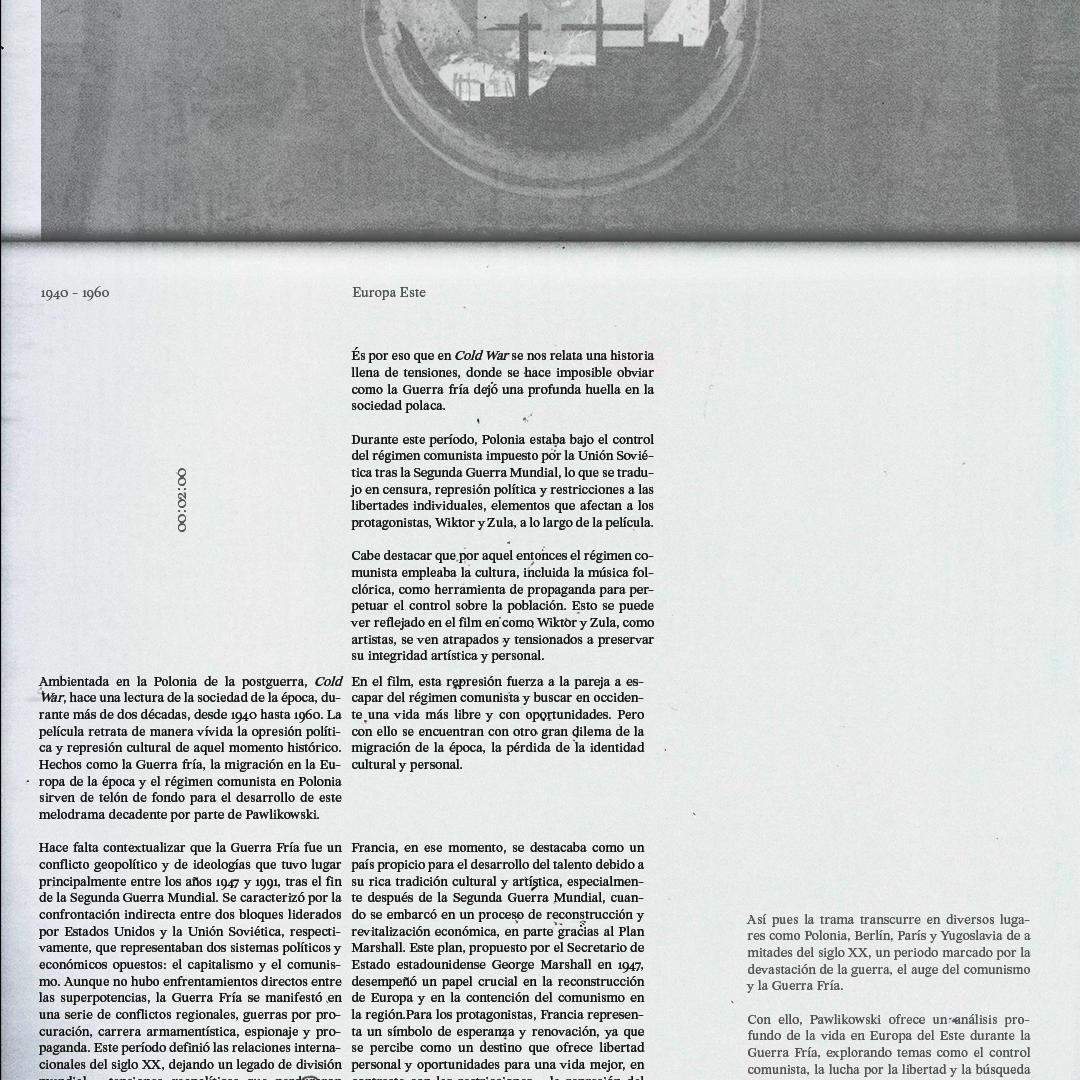 Credits for the film Cold War, directed by Polish filmmaker Paweł Pawlikowski in 2018. Set during the Cold War, it follows the tumultuous relationship between Wiktor, a musician, and Zula, a singer, from 1950s communist Poland to the bohemian Paris of the 1960s. Their passionate and destructive love is constantly affected by the political and social circumstances of the time.